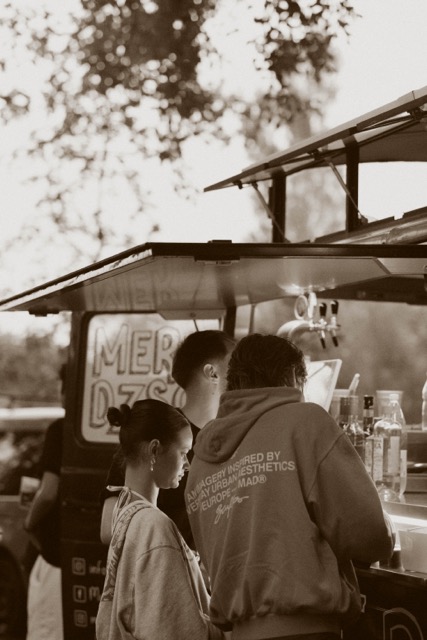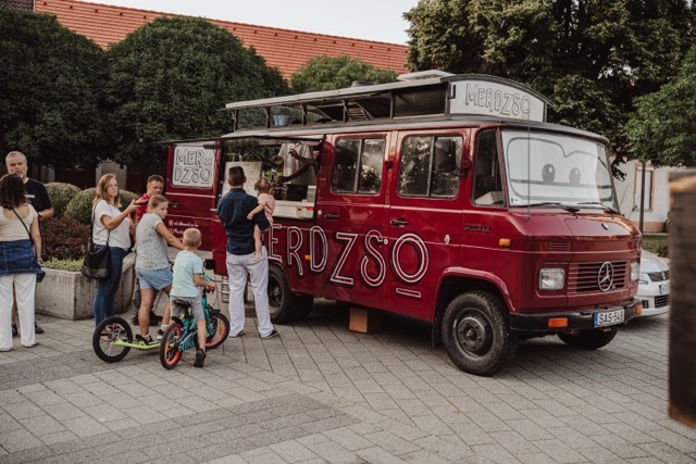 A Merdzsó egy retró stílusú, mégis fiatalos hangulatú, modern technikával felszerelt 1973-as Mercedes 508D Food-Drink-’n-Party Truck. Két testvér ötlete kelt életre benne – egy családi éttermi háttérből a Papsajtból indulva, ahol a minőség és a vendégszeretet mindig első helyen állt. Küldetésünk, hogy ugyanezt az életérzést vigyük tovább: minőségi alapanyagokból készült ételeinkkel és italainkkal igazi élményt teremtsünk – jó hangulatban, stílusosan, egy kis lazasággal fűszerezve.